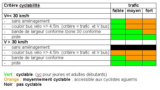 Plusieurs degrés de cyclabilité
