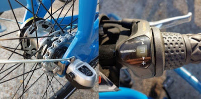 Coté équipement, on dispose d’un moyeux 3 vitesses amplement suffisant avec l’assistance mais gare à ne pas se trouver batterie à plat en bas d’une cote !